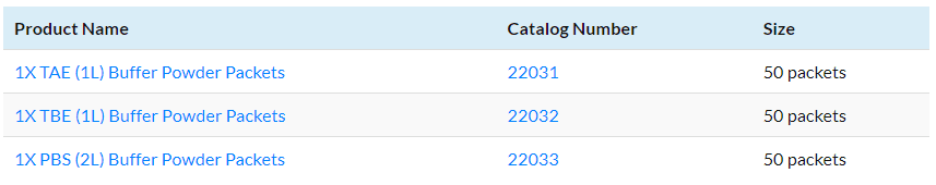 1X PBS (2L) Buffer Powder Packets | 22033 | 50 packets | Generally 1-2 weeks from receipt of order | Biotium | Log in for pricing |