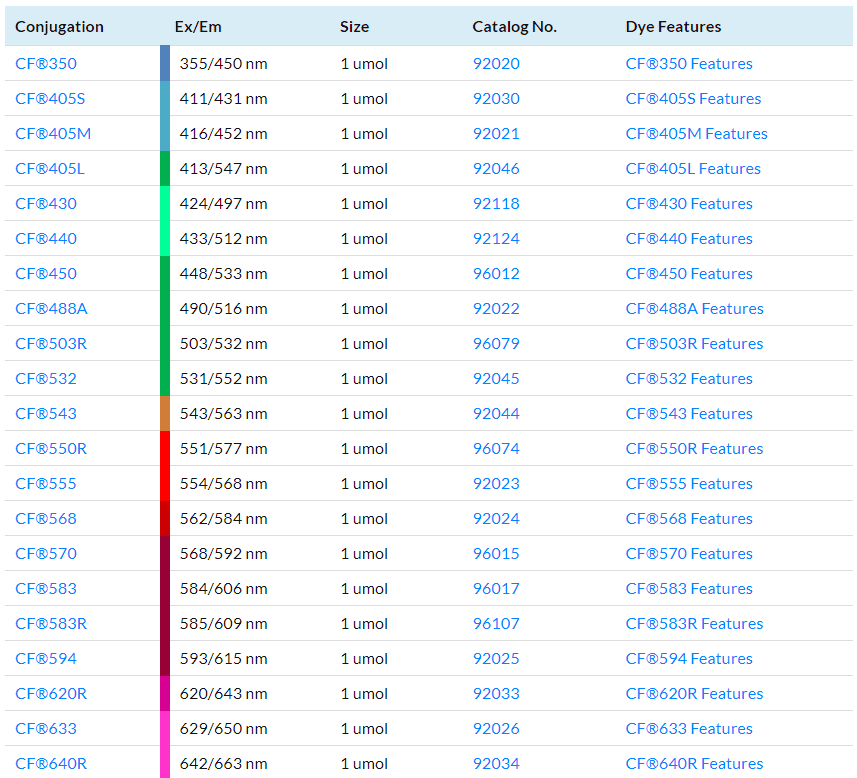 Learn more about CF® Dyes. For more information download the CF® Dye Brochure.