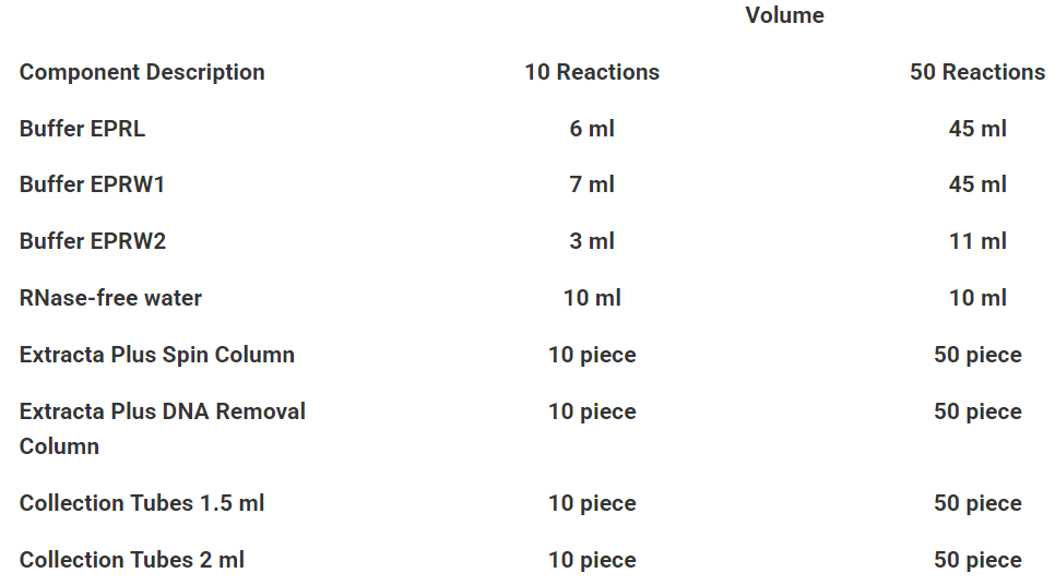 Extracta Plus RNA Kit is intended for molecular biology applications. This product is not intended for the diagnosis, prevention or treatment of a disease.