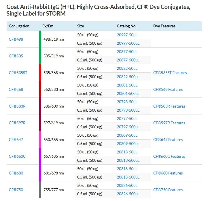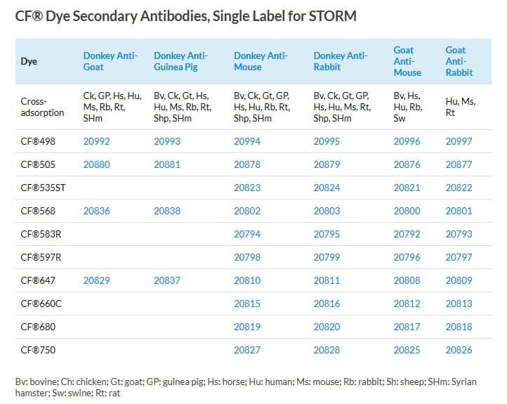 - CF® Dye single label secondary antibody ideal for STORM imaging