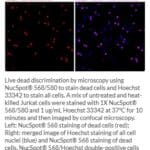 NucSpot® 555/570 and NucSpot® 568/580 have orange and visible red fluorescence, respectively, and are nuclear-specific alternatives to PI and similar dyes.