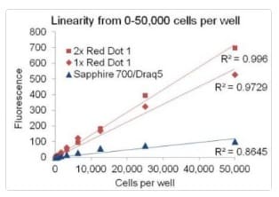 RedDot™1 is a far-red cell membrane-permeant nuclear dye similar to Draq5™. The dye is ideal for specifically staining the nuclei of live cells.